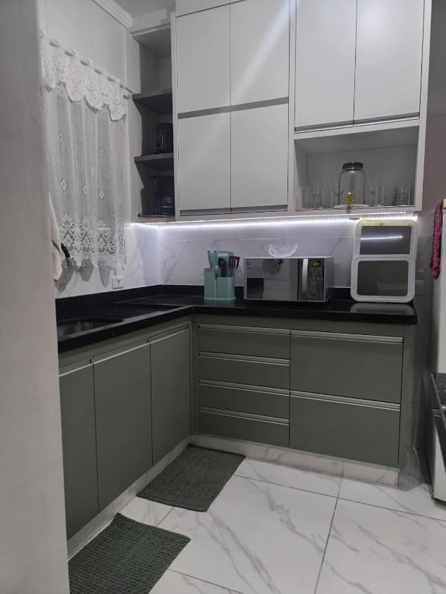 Cozinha com pia em granito preto
